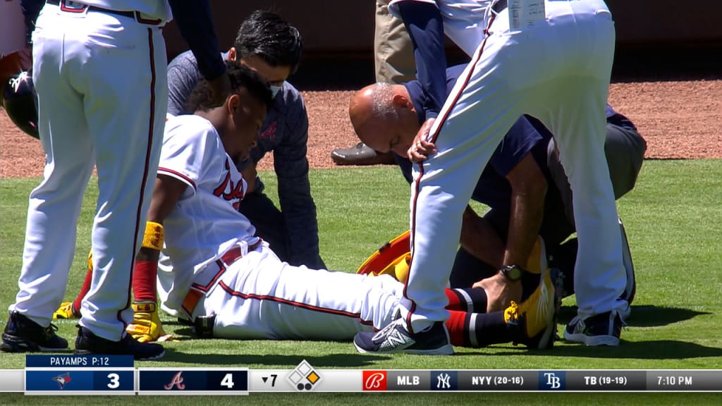 Acuña was injured in the top of the seventh inning when he was running toward first base.